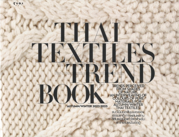 | PB004291 | Thai Textiles Trend Book Spring/Summer 2022 - 2023 | ห้องหนังสือภาษาไทย (Thai Books Zone) | A | 1 | อยู่บนชั้นวางหนังสือ | เข้าสู่ระบบ |